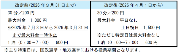 レバンテ垂水2番館駐車場(垂水区役所地下)は、2025年7月3日より、混雑緩和対策として、一日最大料金(1,000円)の設定を一時休止しておりましたが、2026年4月1日より、以下のとおり最大料金を改定いたします。