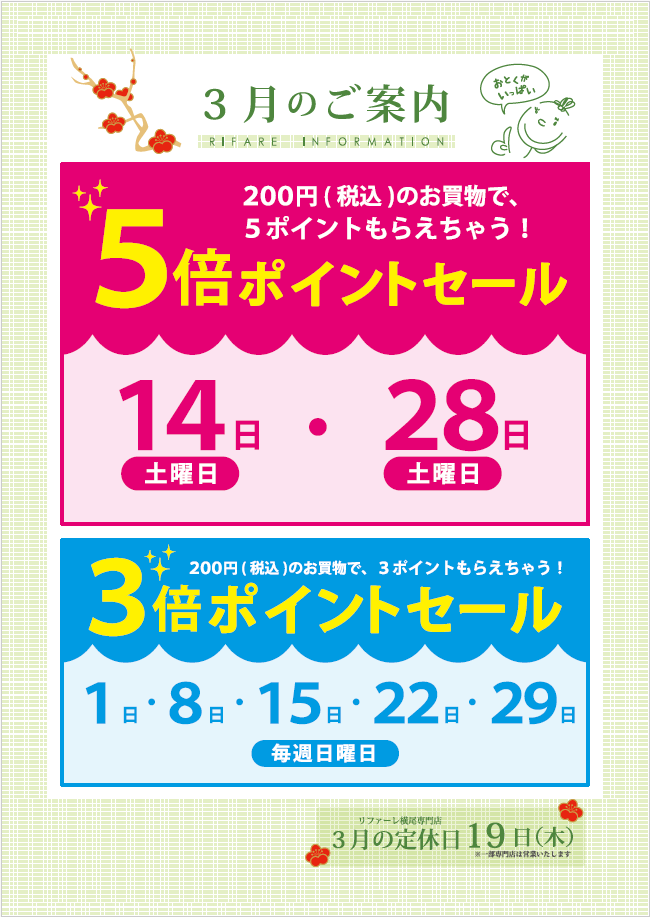 ◆ リファーレ横尾 ◆ ポイントアップデーのお知らせ