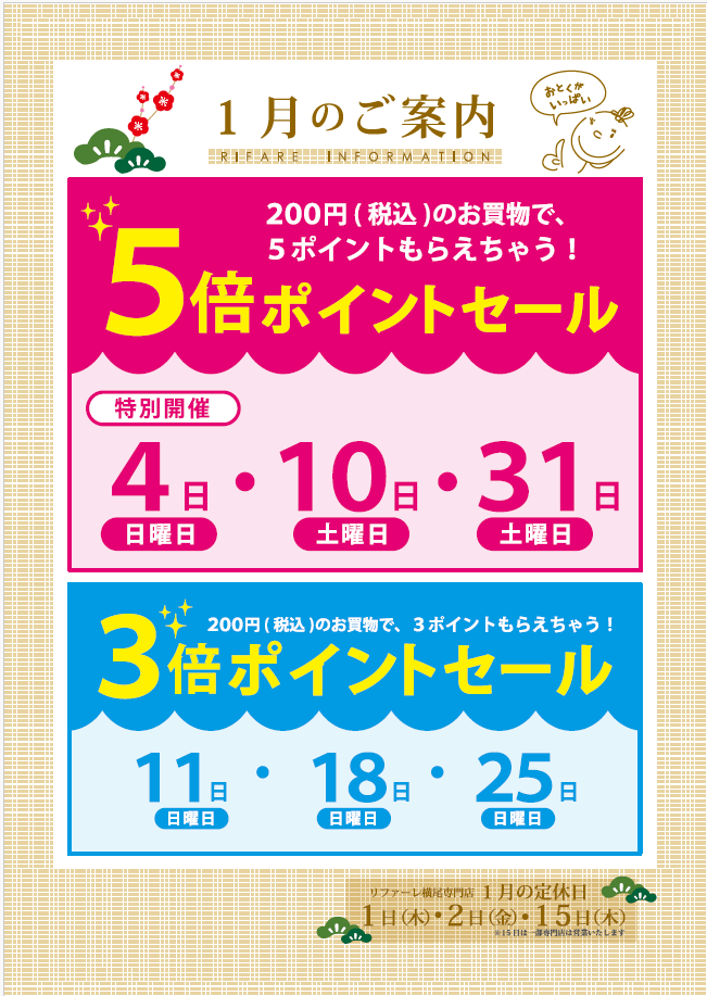 ◆ リファーレ横尾 ◆ ポイントアップデーのお知らせ