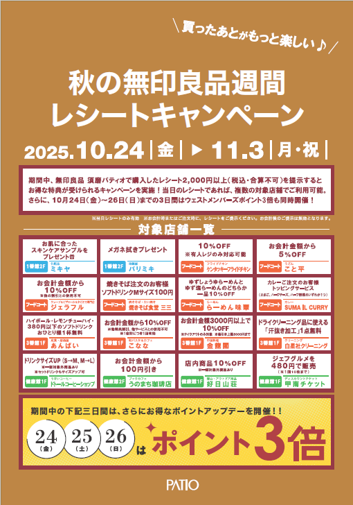 毎月10日はえびすの日、25日はパティオの日で『ポイント3倍デー』!