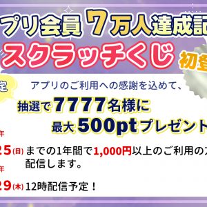 スクラッチくじキャンペーン(アプリ会員7万人達成記念)